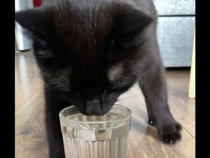 猫さんのお水を飲む前の儀式?こんな動き初めて見るよ!