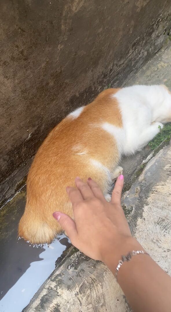 道を歩いていると、側溝に寝そべっているネコの姿を発見した撮影者さん。 しかし、側溝という事もあり水がそこには流れてきていましたよ!!