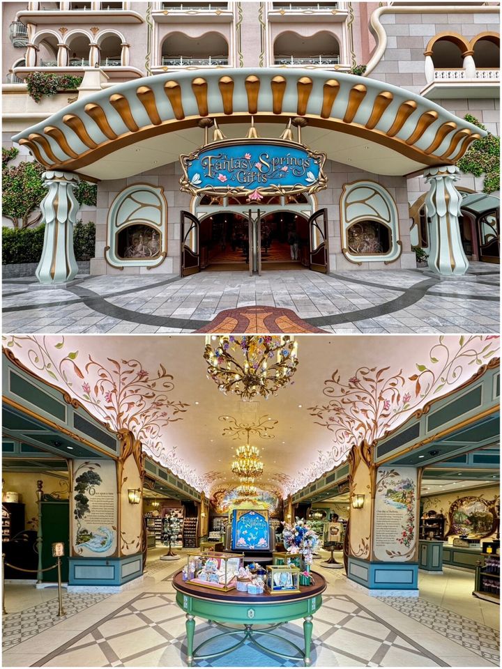 「東京ディズニーシー・ファンタジースプリングスホテル」の1階に位置し、パーク側に入口があるギフトショップ「ファンタジースプリングス・ギフト」。魔法の泉の物語の魅力が感じられるファンタジースプリングス内唯一のショップです。