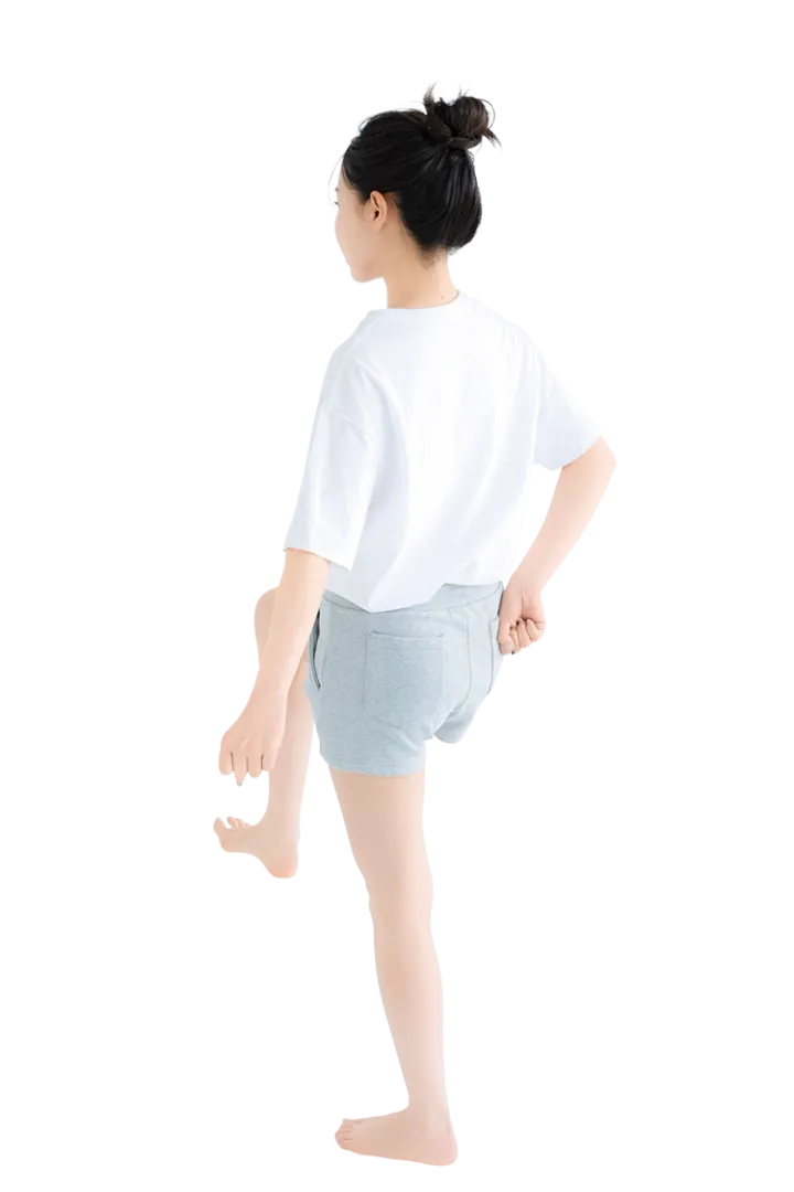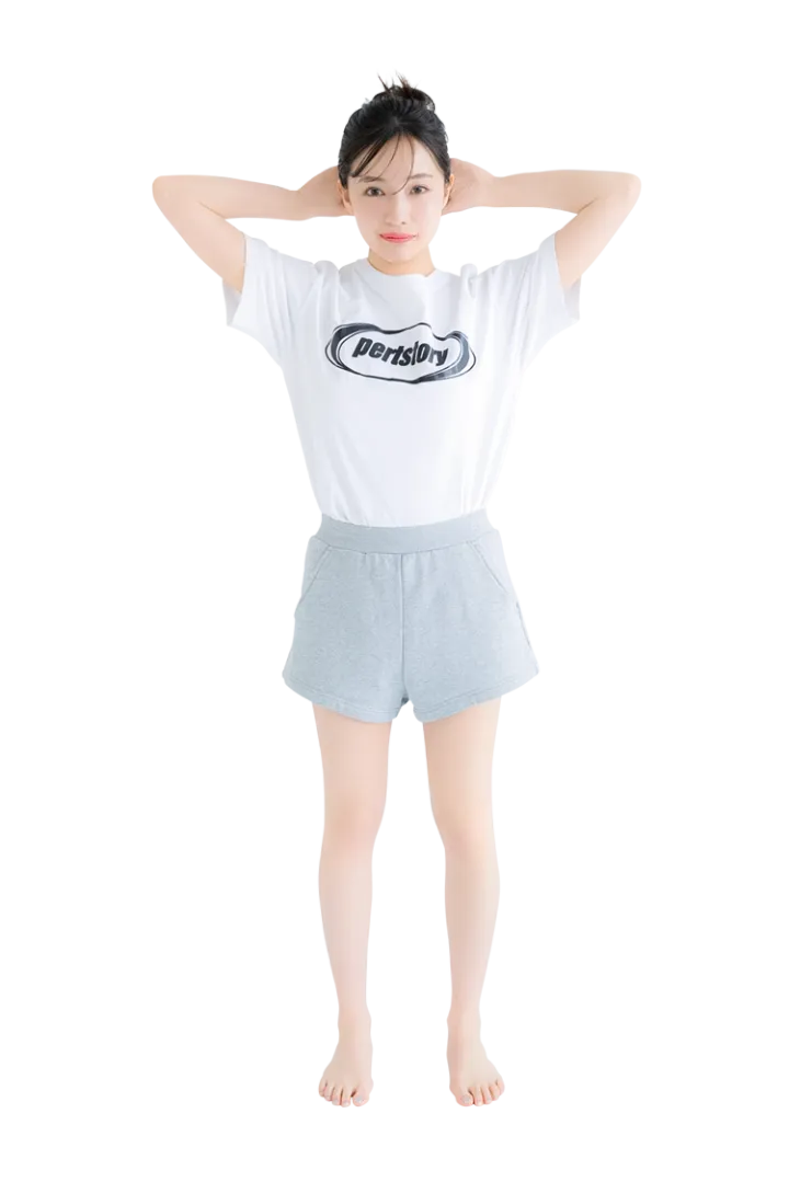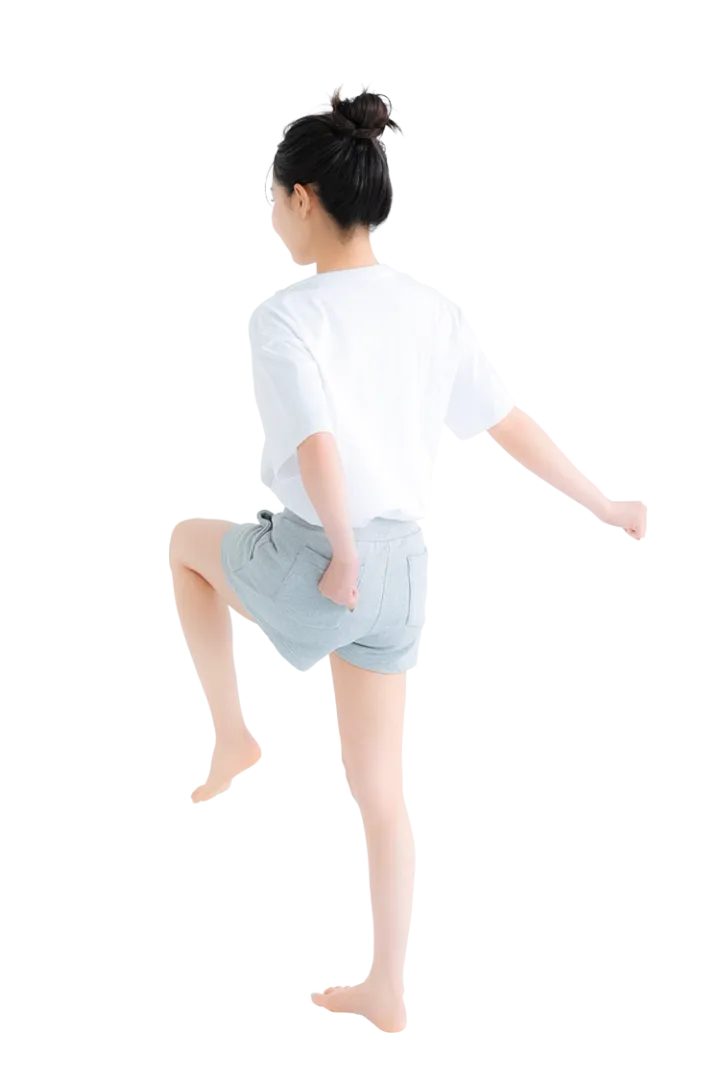 両手をグーにして、筋肉に響かせるようなイメージでおしり全体を叩きながら足踏み。振動でリンパの動きを活性化させつつ、老廃物を流しちゃおう♡