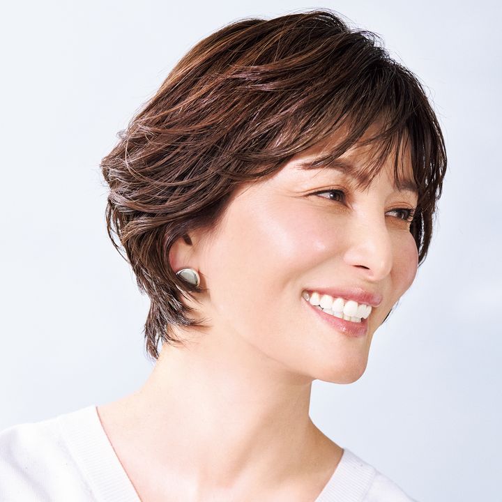 後頭部の下重心フォルムと毛先の遊びで、軽いパーマをかけたかのような気品と華やかさで骨格美人見せも。