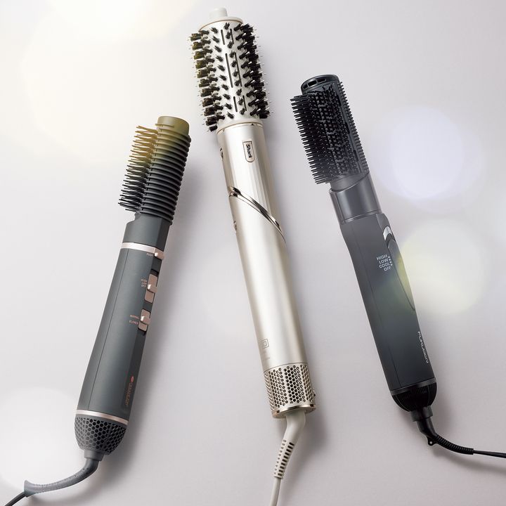火傷の心配が少なくコテより扱いやすく、ブラシが進化し、より繊細なスタイルが作れるように。エイジングが気になる髪にツヤを与えたりと、サロン顔負けの仕上がりが期待できる高機能。洗髪後のまだ多少湿っている状態、乾いた髪なら根元を中心に水スプレーで軽く湿らせてからカールドライヤーを使うのが効果的。温風のあと冷風にスイッチを切り替えるか、スイッチを切って数秒冷ますと形が決まります。