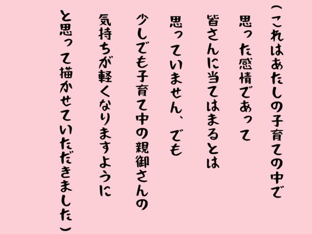 でも、少しでも子育て中の親御さんの気持ちが軽くなりますように。