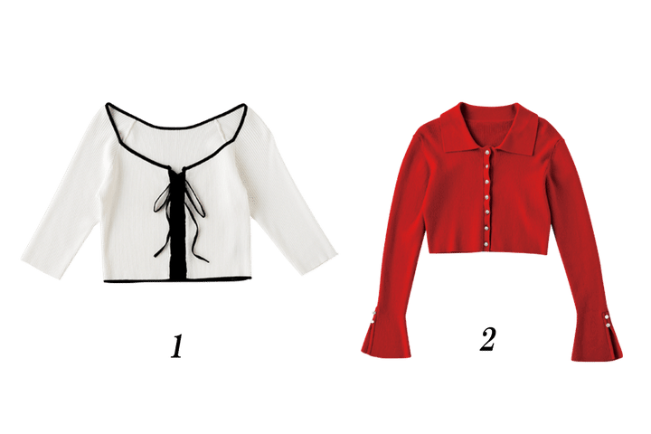 1.モノトーンカーデはアイテム自体が大人っぽいので、+ミニボトムで可愛げをON。