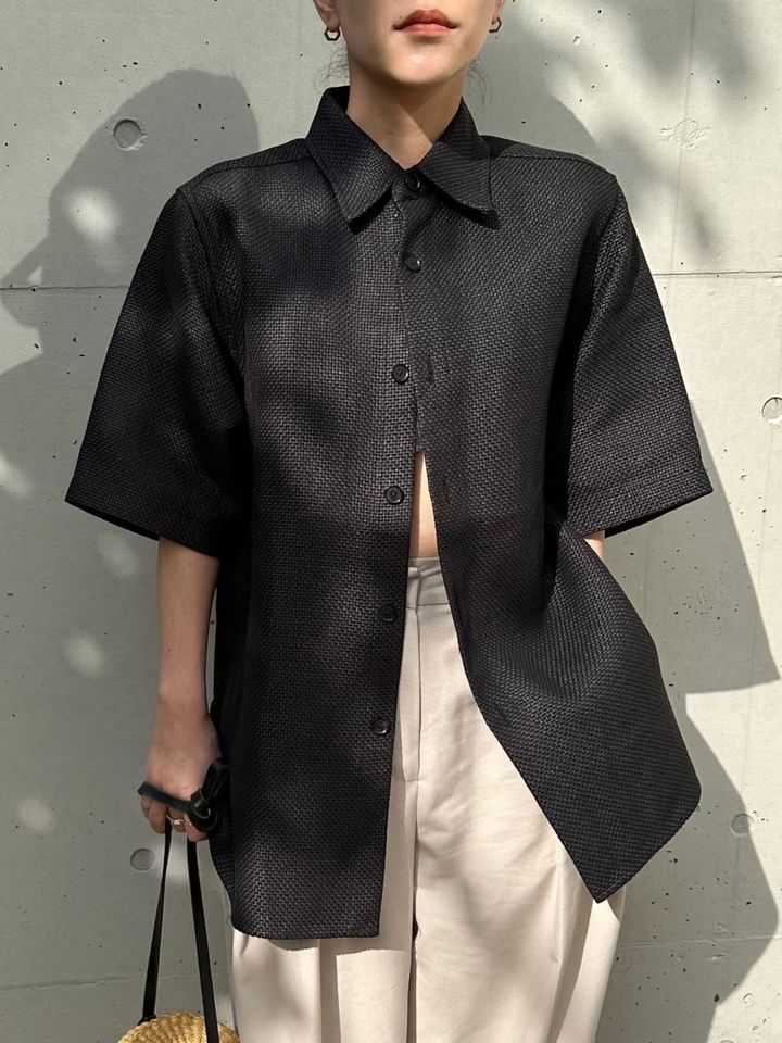 「シャツは和紙で作られていて、素材のハリ感や光沢感など、シンプルながらも他にはないこだわりの詰まった一着。オーラリーならではの品のある仕立てのよさがお気に入りです」AURALEEのシャツは本人私物