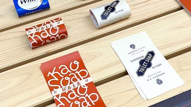 ケアブランドの花王からは、130年以上続く花王石鹸の歴代パッケージデザインが数点復刻し、包み紙としてセレクトしたものを購入することができます(1個税抜150円)。