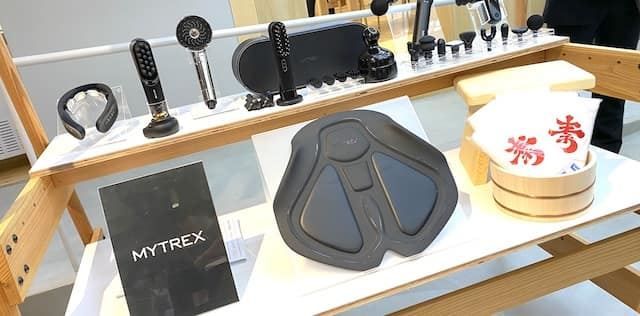 美容健康器ブランドのMYTREX(マイトレックス)からは、美容健康家電のお試し体験。銭湯の中に2台最新シャワーヘッドが設置されているほか、番台で電気針ヘッドスパやトータルリフト美顔器のレンタルをすることができます。