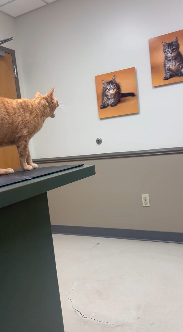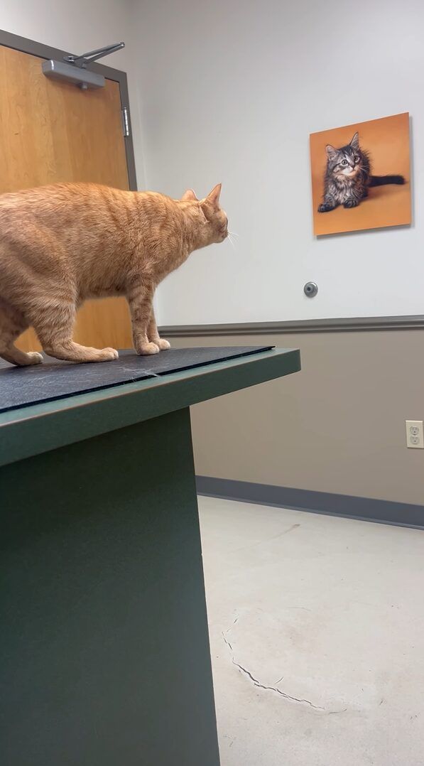 動画が撮影されたのは、アメリカ・イリノイ州にある動物病院。 撮影者さんが、子ネコの診察にやってきた時のことです。