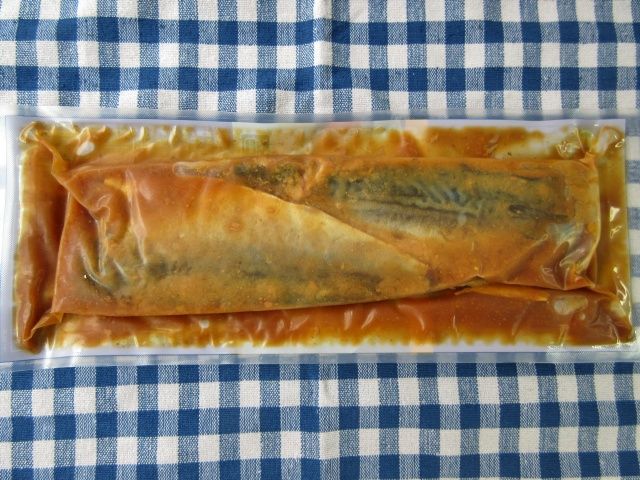 袋の中には、さばの切り身が2つ入っています。一袋に2つ入りですから、一切れ当たり139円になる計算。やや高めですが、味付けしてあるのでお得感はありますね。