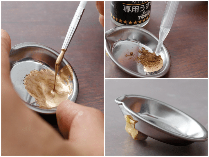 (4)金属粉と新うるし、薄め液を混ぜる