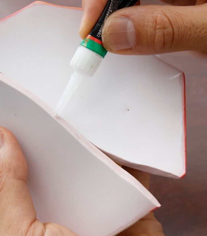 割れ目に接着剤をつけ、割れたパーツ同士をぴったりと密着させる。多くても接着効果が高まるわけではなく、金うるしがのりにくくなるので、はみ出さないように注意する。