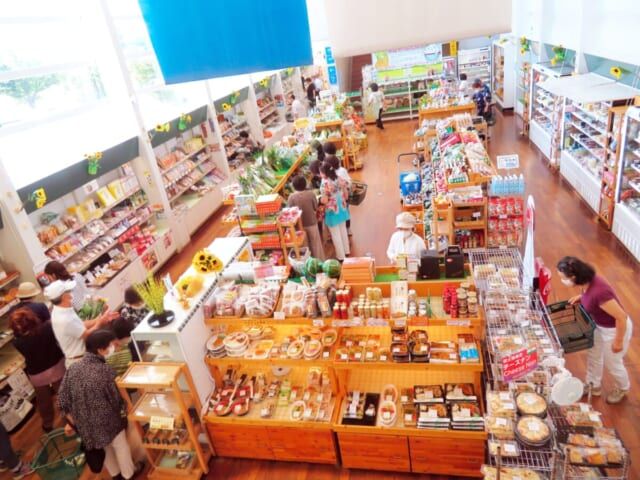 「ふれあい市場」には多古米をはじめ、多古大和芋、元気豚、地元で収穫された旬の野菜、手作り惣菜やパン、日本酒、多古町のマスコットキャラクター「ふっくらたまこ」のグッズまで、見るだけでも楽しくなるような商品がそろっています。