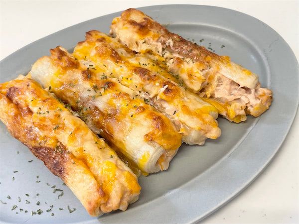 250℃のオーブントースターで約10分、チーズに焼き色が付くまで焼き上げます。
