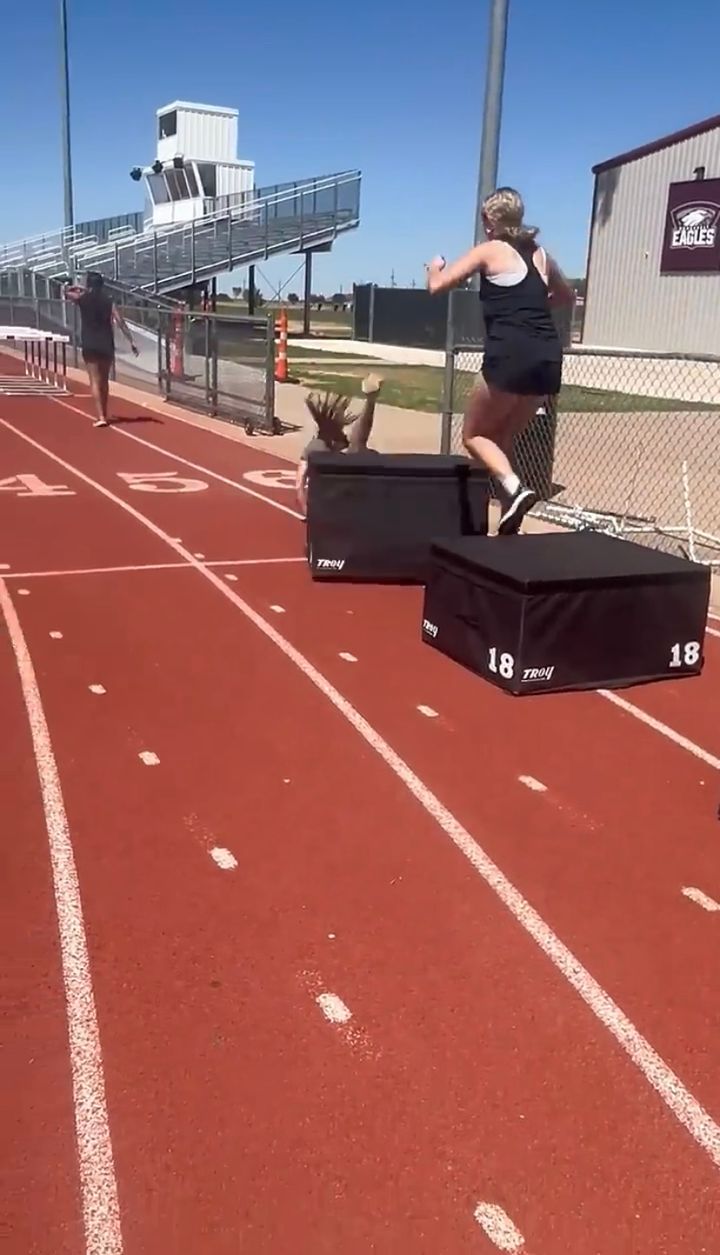 トレーニング中の少女にまさかのハプニング!!垂直跳びでボックスに飛び移っていたら・・【アメリカ・動画】