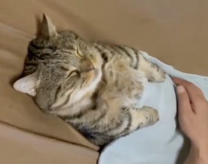 飼い主さんにされるがままの猫さん、