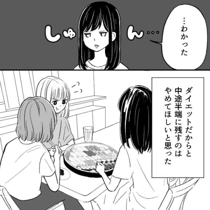 ダイエット中だからといって、お寿司のネタだけを食べるなんて、許せないですね。ましてや残りのシャリを他人に渡すなんて・・・。自分のことを俯瞰できるような人になりたいですね。