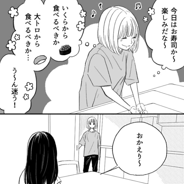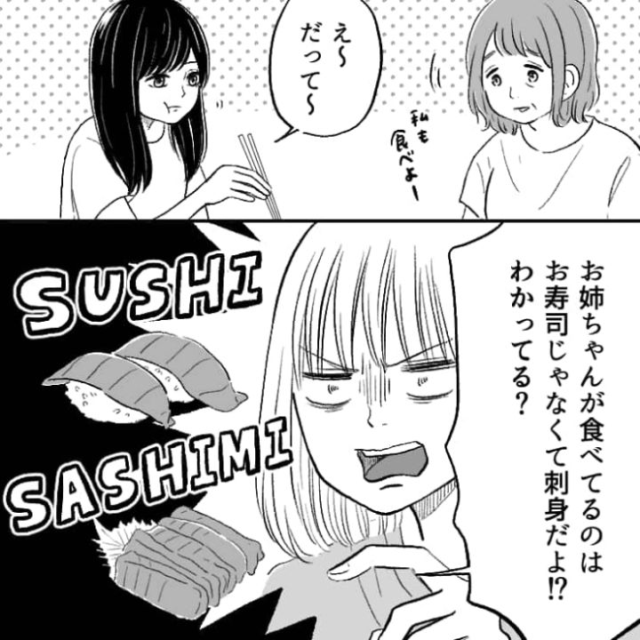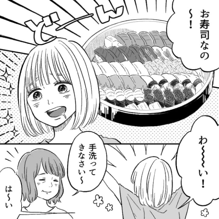帰宅すると夕ご飯はまさかのお寿司!楽しみに食卓に行くと、姉が先にお寿司を食べていて・・・。