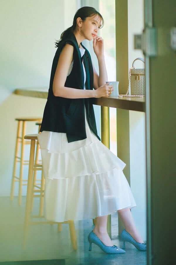 リラックス感のあるマキシをスマートなジレで洗練させて