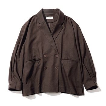 ブラウンリネンミックステーラードジャケット /STYLEMIXER(バロックジャパンリミテッド) シワになりにくいリネン混。着ていてラクなボックスシルエットも、丈感をやや短めにすることでどんなボトムとの合わせも、もたつきもなくすっきりとした仕上がりに。