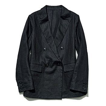 黒ジャケット/スローブ イエナ(スローブ イエナ 自由が丘店) 微光沢を含んだ、ゆるくもなくタイトでもない、美シルエットのダブルボタンジャケット。お尻が隠れる丈感でリネン100%生地でこのプライス、というのもうれしいポイント。