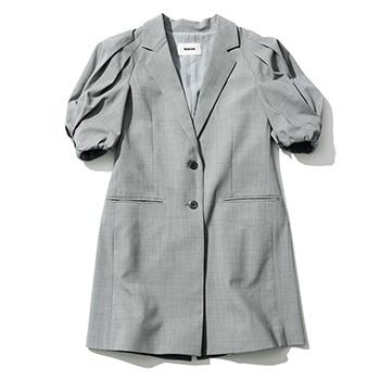 グレーバルーンスリーブジャケット /ラム・シェ(ブランドニュース) シルエットはスリムでもジャケットのようなお堅さのない「そでのない」ジャケットが豊富に登場中。辛口なテーラードデザインに、お堅いグレー。その中で1点、そでにふくらみを持たせることで、大人にもちょうどいい甘さに仕上げた好バランスなデザイン」(スタイリスト・船戸唯さん)