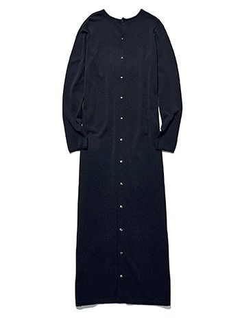 黒2WAYニットロングワンピース/ゲミニー(ウィム ガゼット ルミネ新宿店) 黒で縦長というドレッシーな印象に反して、受け入れ幅の広いカーディガンタイプ。着くずしてもキレイを保てるから、カジュアルな着方にも向く。