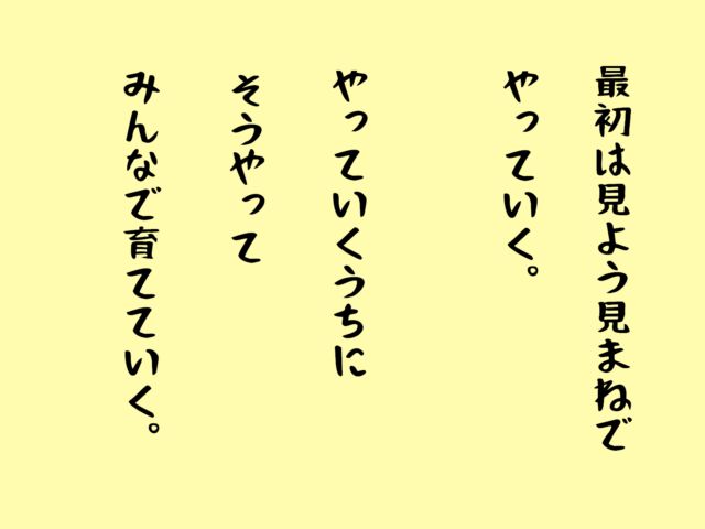 やっていくうちに、そうやってみんなで育てていく。