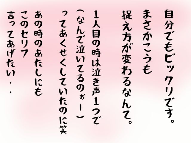 1人目の時は泣き声1つで(なんで泣いてるのぉー)ってあくせくしていたのに(笑)