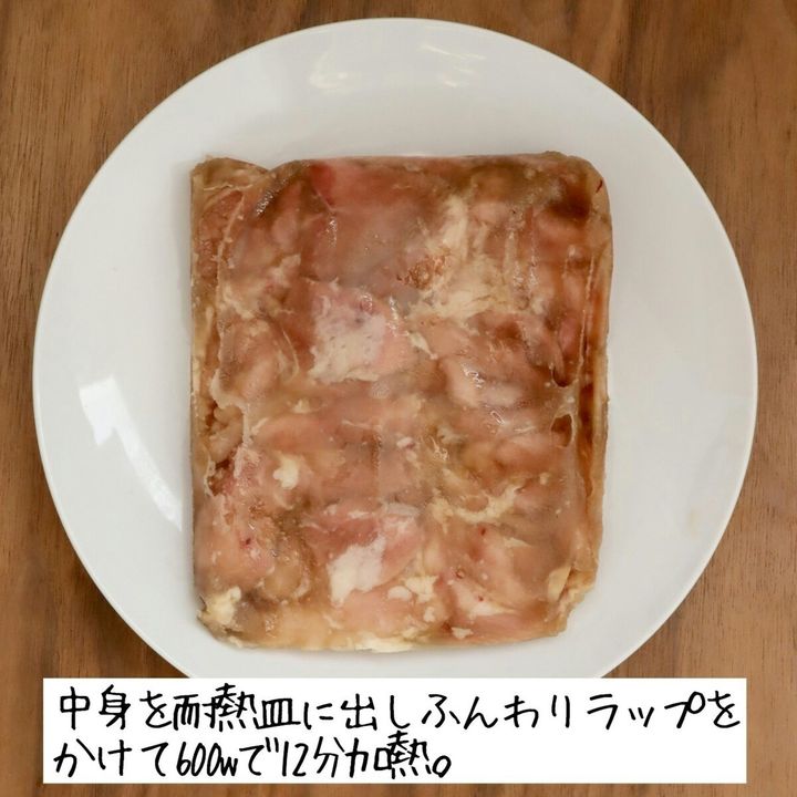 中身を耐熱皿に出し、ラップをかけて600wで12分加熱。