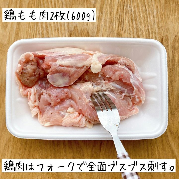 鶏もも肉は全体をフォークで刺す。