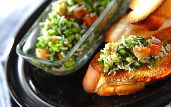シラスと青ネギのブルスケッタ