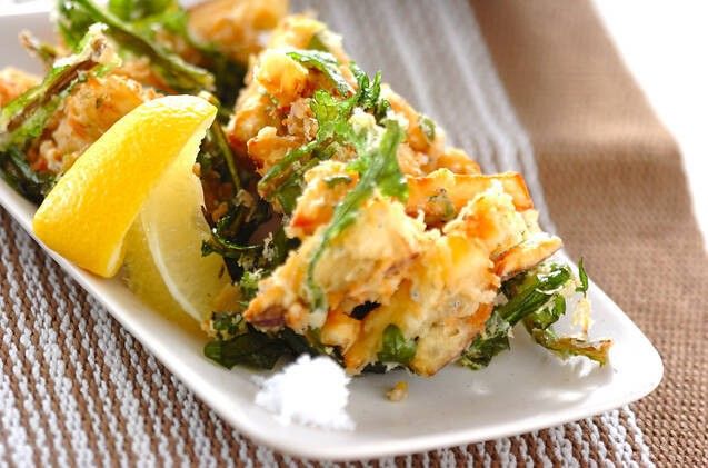 菊菜の苦みとシラスの塩気でサツマイモのやさしい甘みが引き立ちます。食材と合わせ粉は何回かに分けて混ぜ合わせるのがポイントです。レモンを搾ってさっぱりといただきましょう。