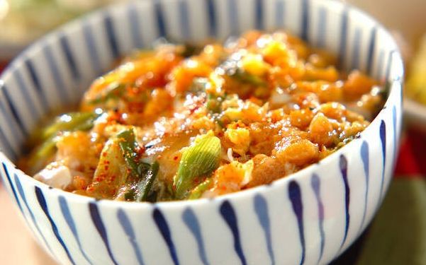 天かすを使用するので、面倒な揚げものの準備は不要! 思い立ったらパパッと簡単に作れるお手軽メニューです。溶き卵は半量ずつ入れてふわふわに仕上げるのがコツです。