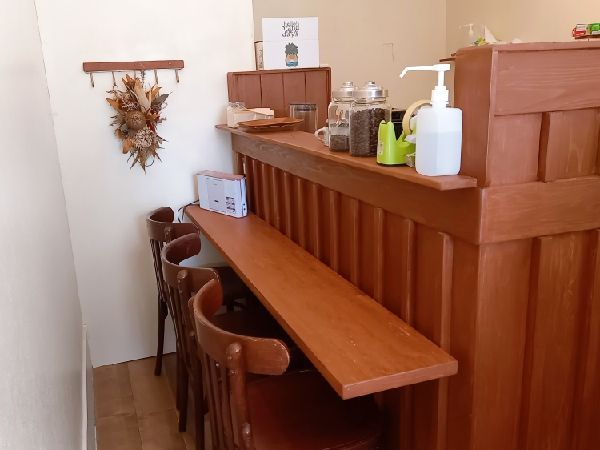 入口に「テイクアウト」と書いてありますが、実は3席のカウンターがあるんです。
