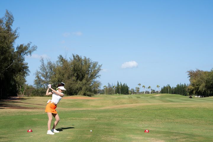ハワイ特有のカラッとした気候に、青い空、広いコースレイアウト、ひらけた景色がもうたまらない! 初めてのハワイゴルフは、想像していた以上の爽快感&開放感を味わえました。「ハワイっていうだけで気分が違う。また絶対にここでゴルフがしたい♡  新たな夢ができました」と、半杭さんも大満足。