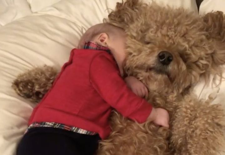 大きなテディベアかと思ったら 仲良く一緒にお昼寝中!
