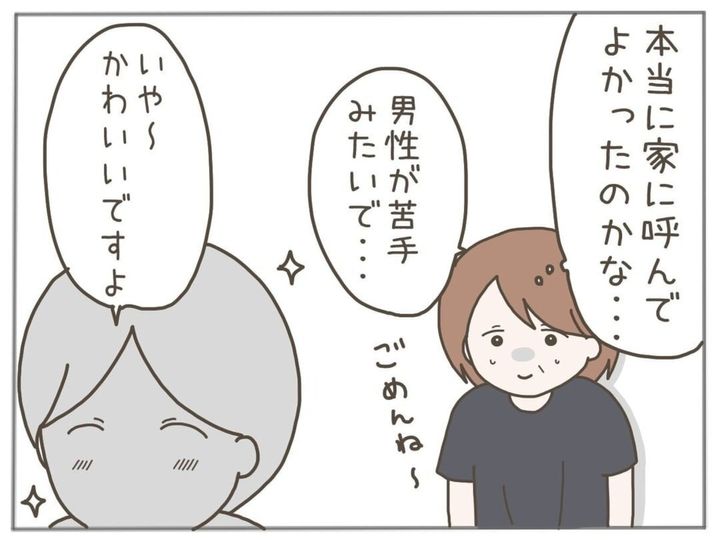本当に家に呼んでよかったのかと、迷いながら家に上げるミキ子さん。今のところ佐藤くん、猫に夢中のようですね。