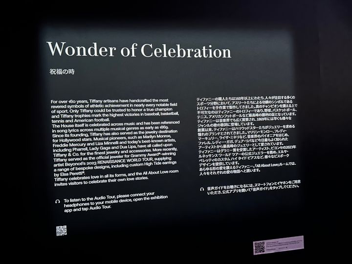 続いては、ティファニーが製作したトロフィーや、世界的アーティストが身につけてきたティファニーのアクセサリーをみることができるエリアとなります。