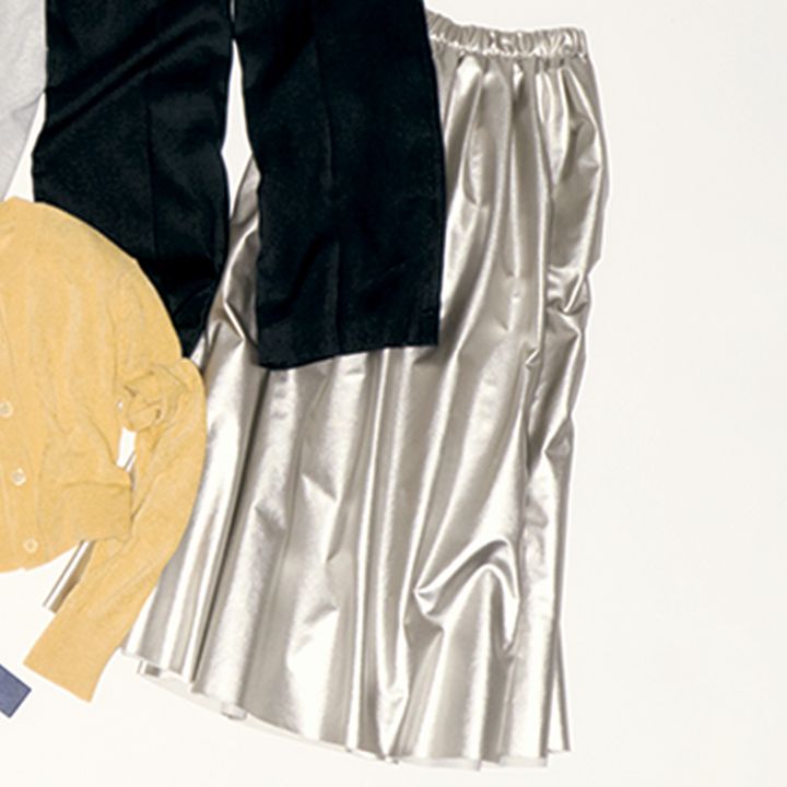 アクセントになる華やかさを投入。メタリックスカート¥39,600(THIRD MAGAZINE)