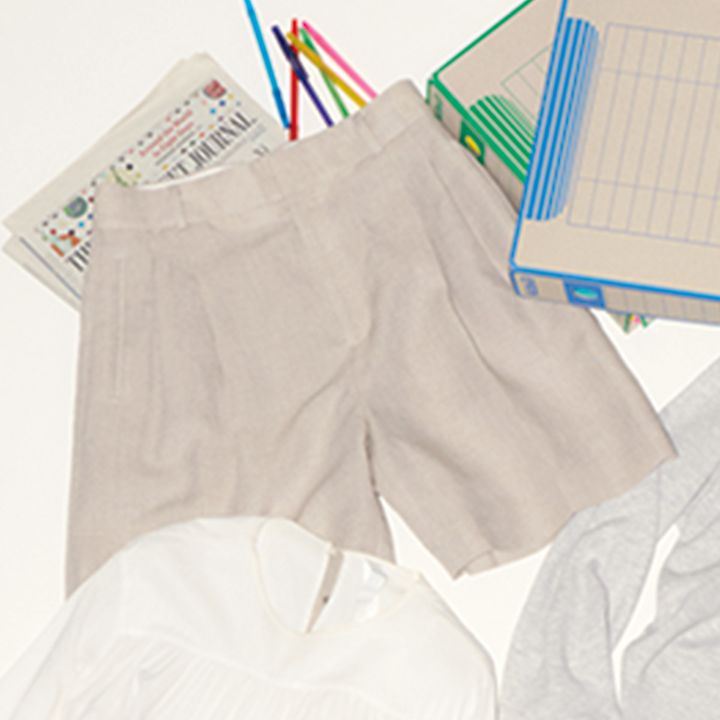 リネンで大人なムードをキープ。ショートパンツ¥39,600(ebure/ebure GINZA SIX店)