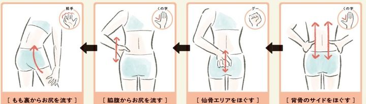 ここを流すと、お尻と太ももの境目がくっきりして、ぷりっとした桃尻を目指せる。