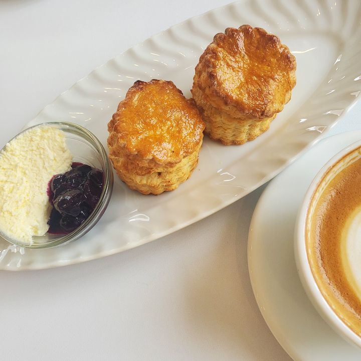 スコーンとクロテッドクリーム&ジャムがセットになったプレート