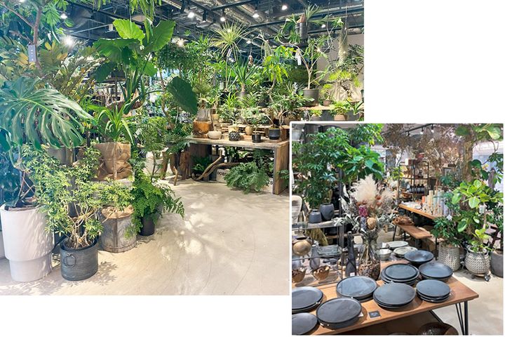 観葉植物をはじめ生花、ドライフラワー、インテリアや生活雑貨が並ぶ。「植物と暮らす」をコンセプトにした空間づくりも必見。