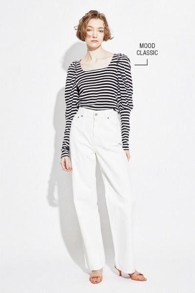 柔らかい生地に、部分的に甘い飾りをほどこしたロンT。デコルテをキレイに見せる開きや、ロンTならではのそでに個性を持たせたデザインなど、ネックラインとそでのささいな変化で、見た目シンプルなロンTを、カジュアル以上に。