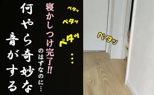 この日はすでに寝かしつけが完了。しかし、寝室のほうからペタッ、ペタッと奇妙な音がしてきました。寝室のほうを見てみると…