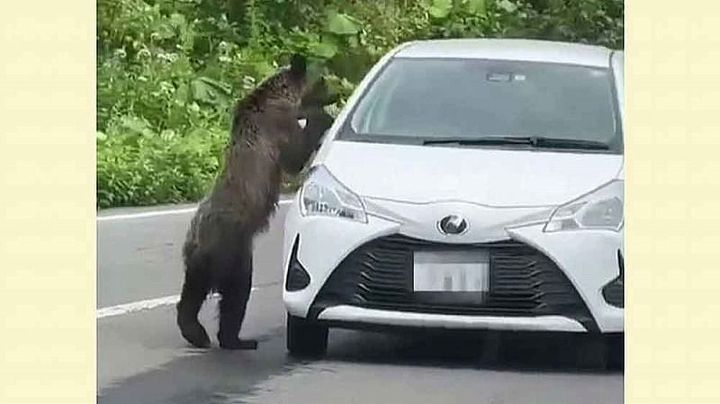 知床などでは、ヒグマが車に威嚇のため突進したり、サイドミラーに手をかけたりする姿も目撃されているので、窓も閉めてください。