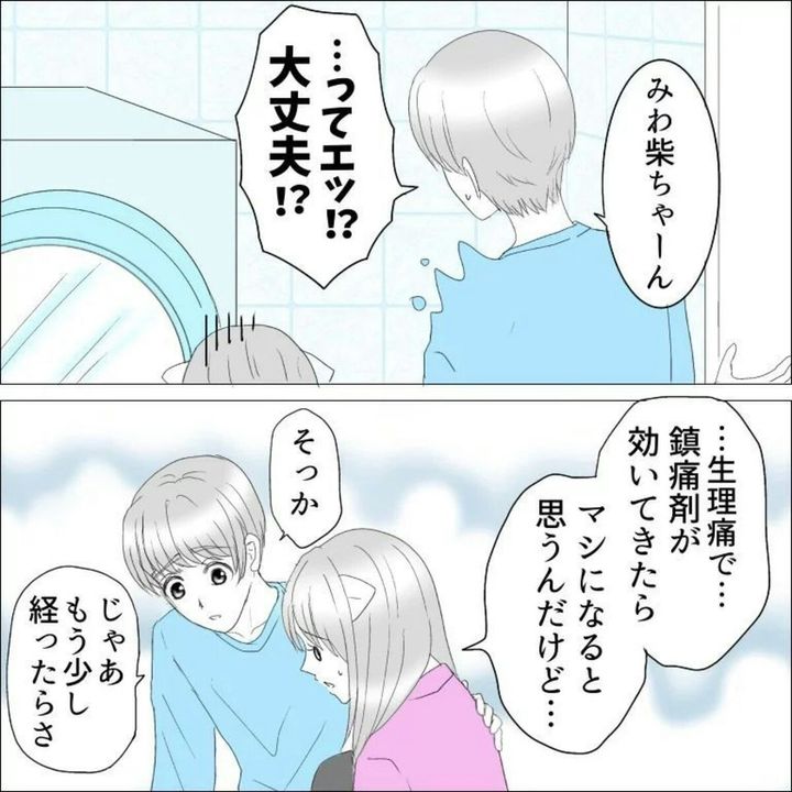作者・みわ柴ちゃん(@miwashibachan)さんは、当時付き合っていた彼と同棲することになりますが、PMSに対して全く理解がなかったことがきっかけで別れを経験しました。PMSに対するお互いの理解と思いやりの大切さについて教えてくれる作品です。生理になり、痛みと闘っていたみわ柴ちゃんさん。鎮痛剤を飲んだにも関わらず痛みは増していくばかり。そんな姿を見たハルくんは「大丈夫?」と声をかけてきますが…。『生理で別れた話』第4話をごらんください。