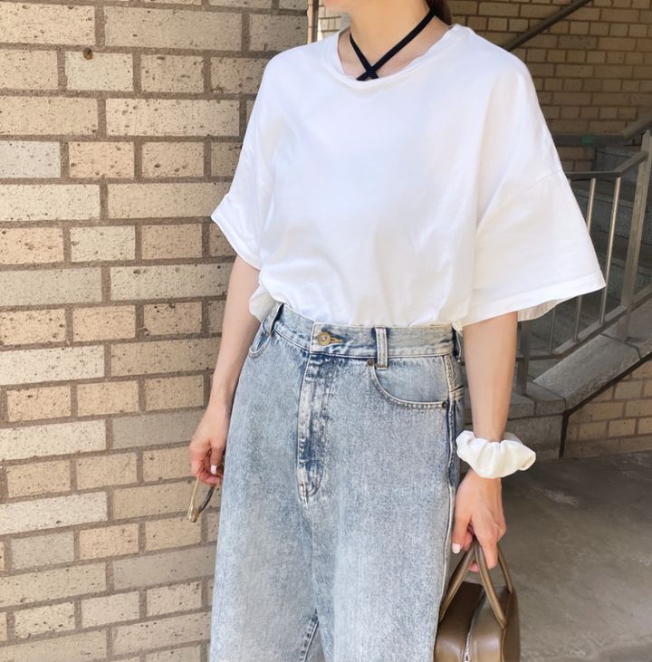 「身ごろも袖まわりもたっぷりとしたシルエットの白Tは、ラフで楽なのにサラッと着るだけで決まります。ヒールをはいても、サングラスをかけてもこなれて見えるところがお気に入り」venitのTシャツは本人私物