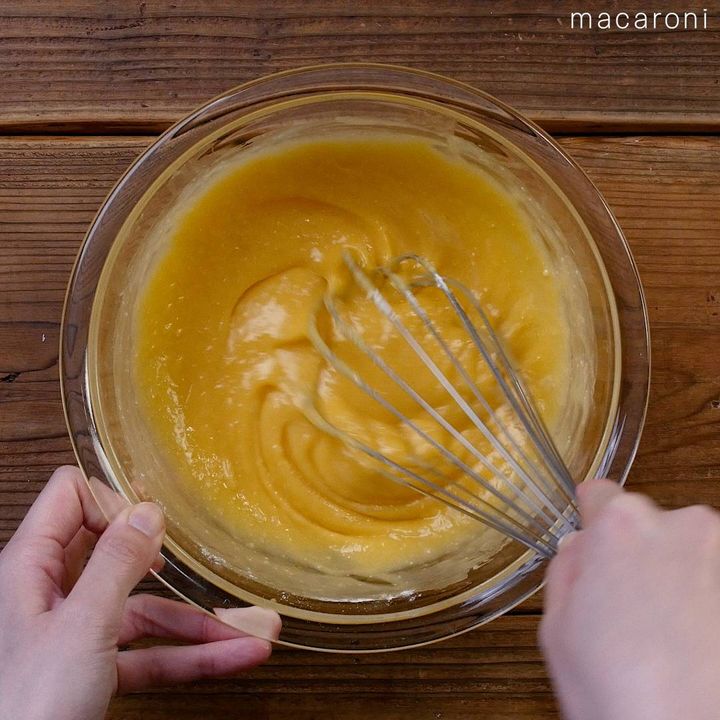 大きな気泡ができないよう、生地は静かに混ぜてください。