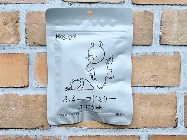フレーバーは、ぶどう味です。酸味は控えめで、やさしい甘さ。やわらかく食べやすい食感で、ほのぼのとしたパッケージのイメージ同様、心和む味わいです。